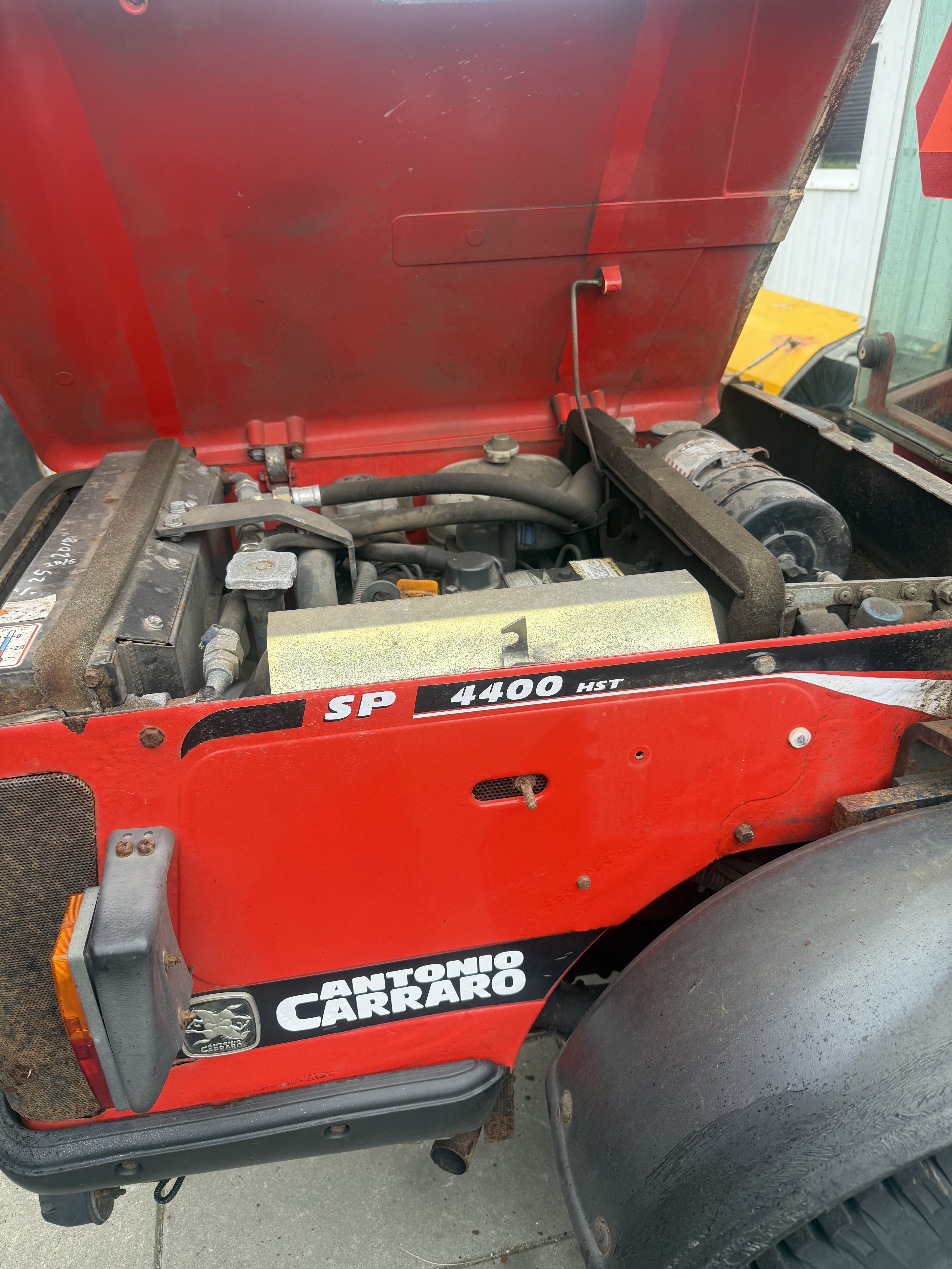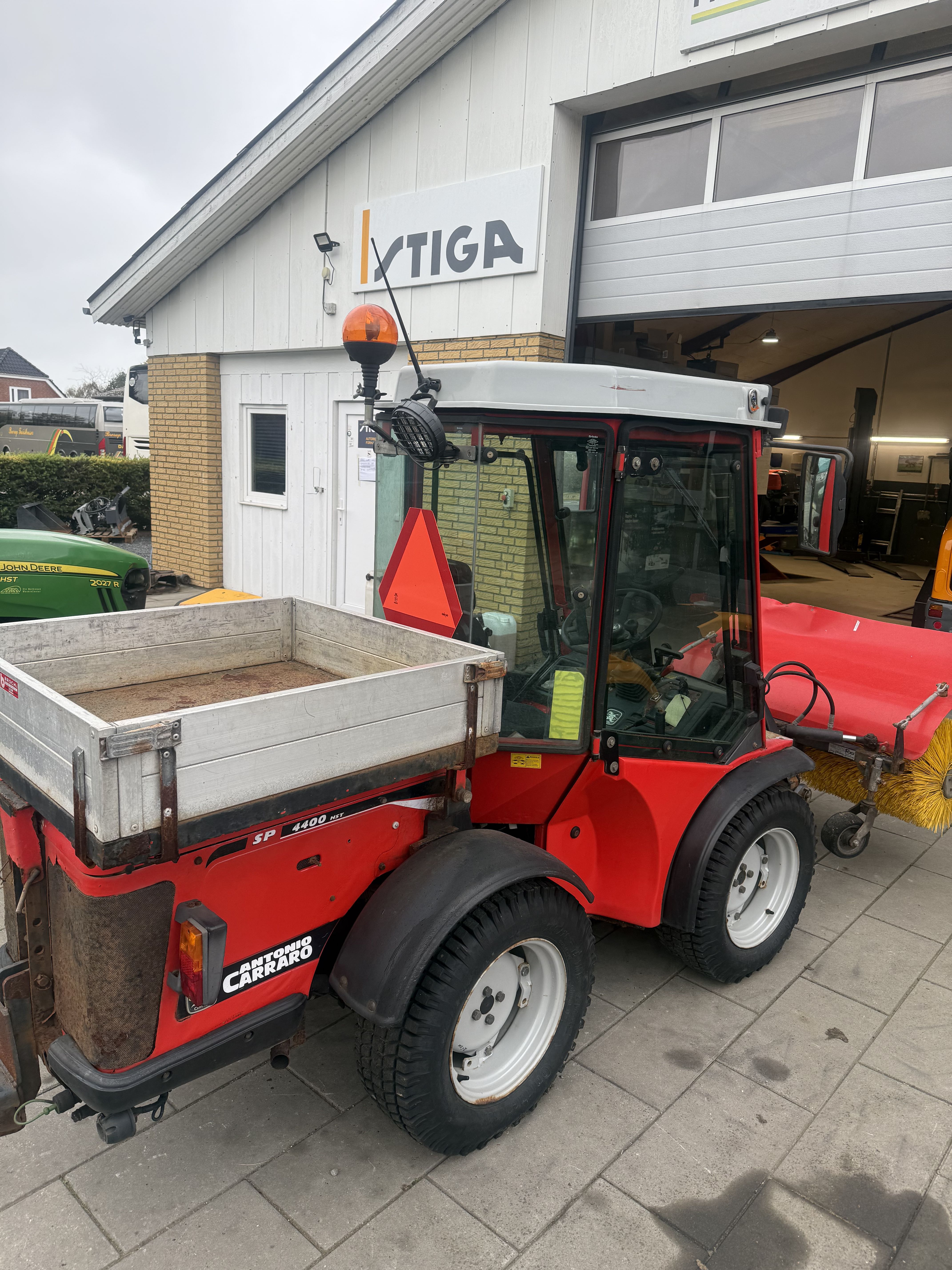 Anotonio Carraro 4400 hst Hydrostat med høj/lav Frontlift Med fejekost 36 hk yanmar diesel Timer kun 960 4x4 Varme/lys/rotorblink Det er lidt rust som skal laves ved trinbræt på begge sider se billede Afhentnings tilbud kun 38.000kr+moms Tá gerne maskiner i bytte Tlf.50993578 6650 Brørup