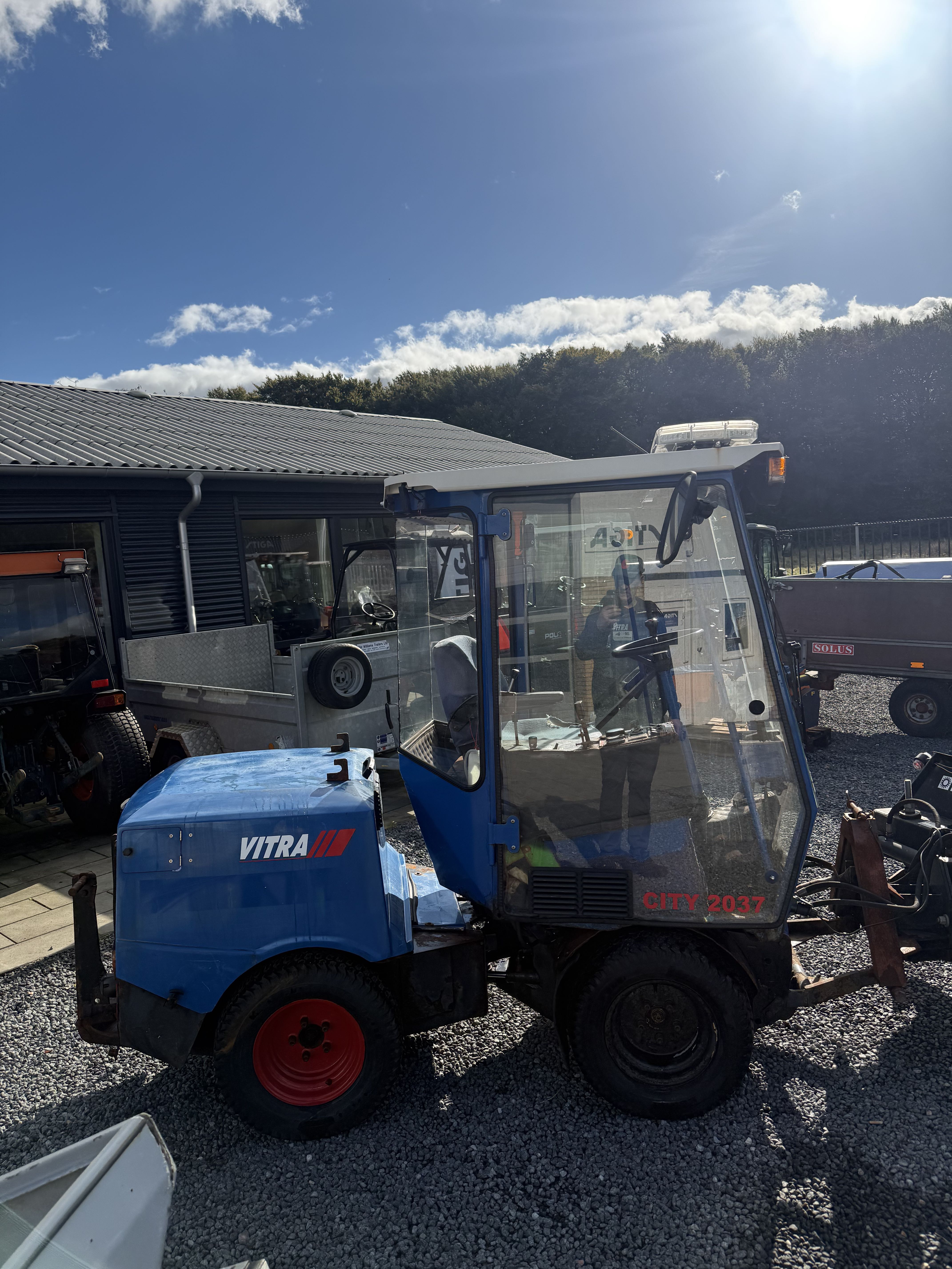 Vitra 2037 med vinterpakke Timer 2500 4 WD Hydrostatic 20/25kmt 37hk Kubota diesel 150 cm V plov Saltspreder godt brugt men virker Varme/lys/rotorblink/luftsæde/radio Starter og kører som den skal Afhentnings pris: 39.000kr+moms Tá gerne maskiner i bytte Tlf.50993578 6650 Brørup