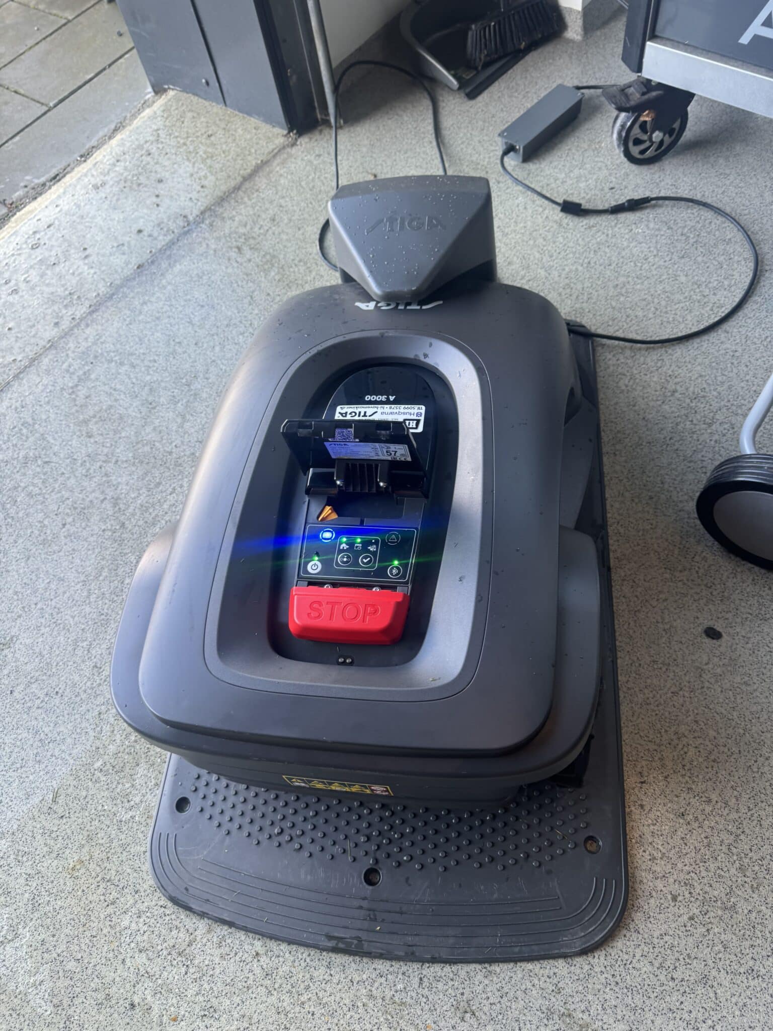 Stiga A 3000 kabelfri robotklipper 3000m2 Op til 5 års garanti Normal pris :29.999kr Tilbud demo model :22.000kr inkl moms Inkl lade station/referance station Installering kan tilkøbes 25km fra 6650 Brørup Kan sendes Havetraktor i bytte Tlf.50993578 6650 Brørup