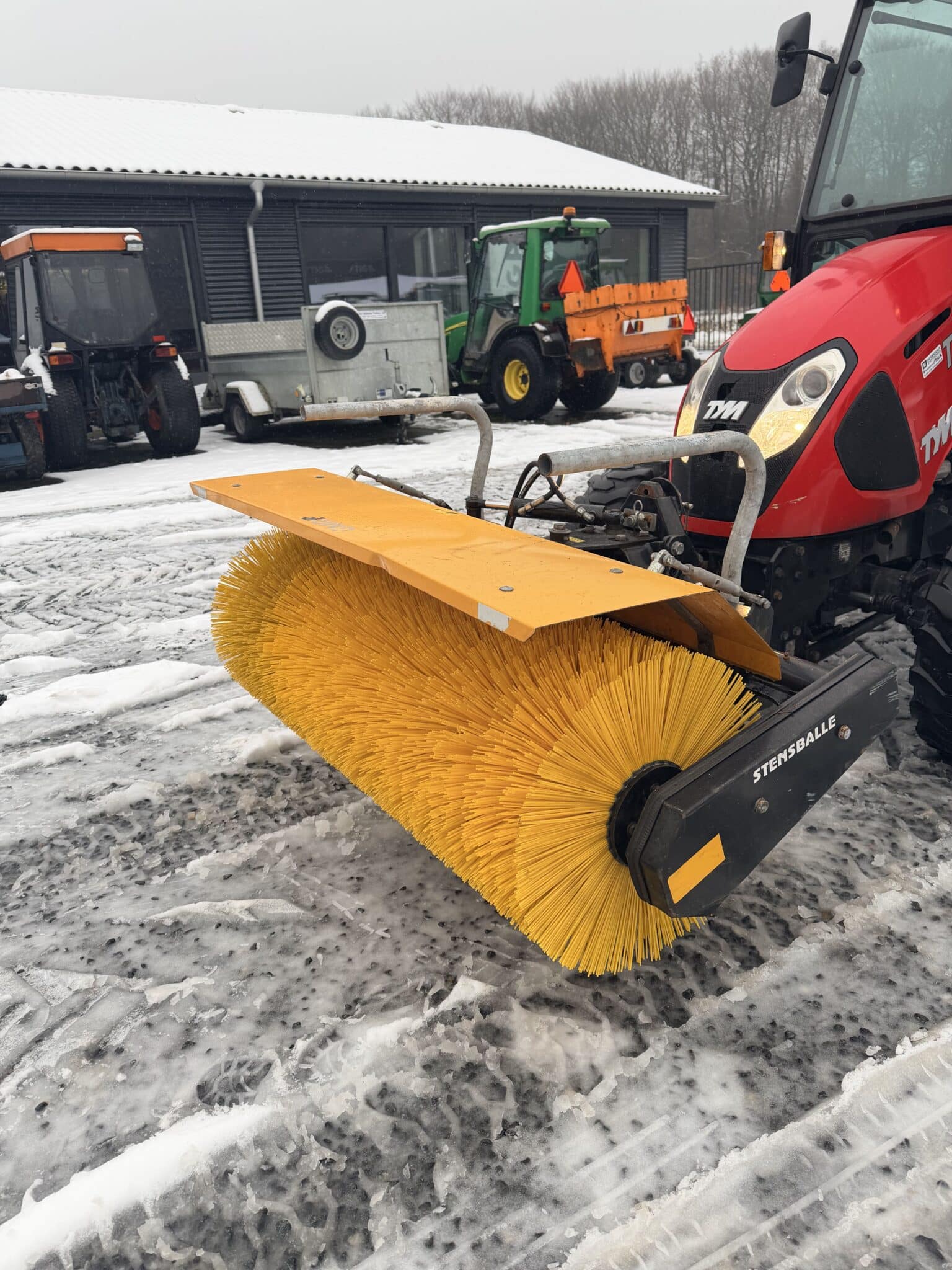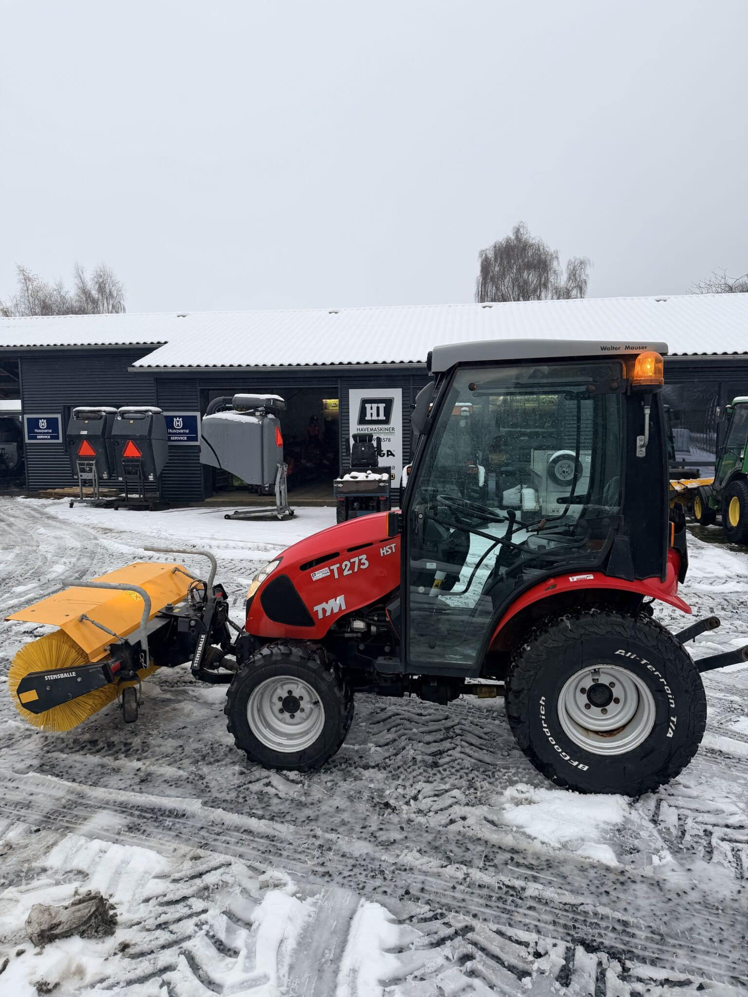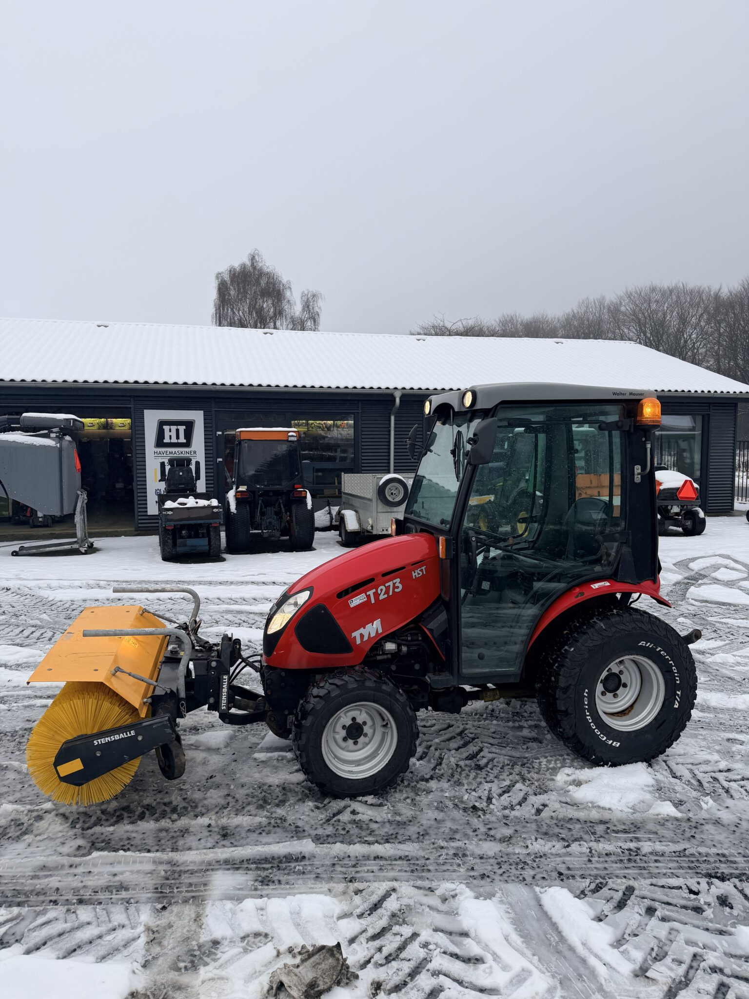 Rigtig pæn TYM kompakttraktor med fejekost Timer 2500 4×4 Hydrostat med høj/lav 27hk Mitsubishi diesel Lift bag 750kg Pto for og bag Hydraulik for og bag Vægt med kost 850kg Varme/lys/rotorblink Den har aldrig kørt salt så en sund maskine af go kvalitet Sydkorea Saltspreder eller valsespreder som tilkøb Afhentnings tilbud:75.000kr+moms Tlf.50993578 6650 Brørup Tá gerne maskiner i bytte